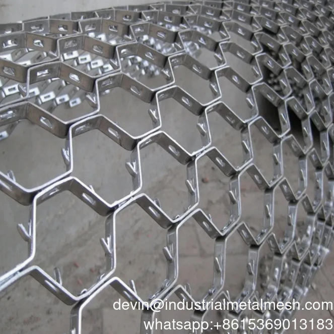 ss309 Hex mesh grid refractory lining is a hexagonal cellular mesh grating specifically designed for reinforcing both linings and flooring. The hex steel mesh acts as a surface framework to hold cement or refractory in position, and relieves stress in the lining's upper crust, which prevents spalling and cracking. As a result of hex metal's strength and unique design, abrasion and corrosion are retarded and refractory life is significantly extended. Even hot gaseous substances cannot erode the refractory because they are reflected away from the surface by the metal cellular grid.