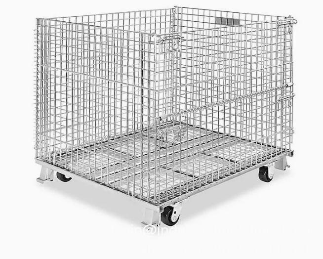قفص تخزين شبكي مجلفن شديد التحمل قابل للطي للمستودعات